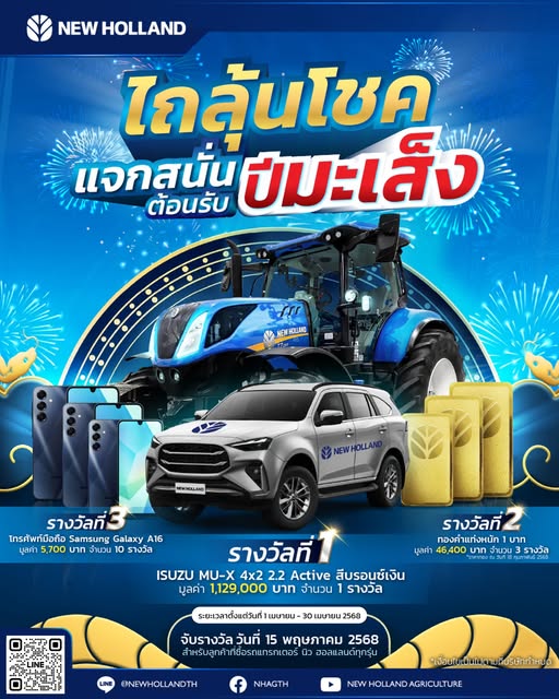 เพียงซื้อรถแทรกเตอร์ นิว ฮอลแลนด์ รุ่นใดก็ได้ ลุ้นรับรางวัลสุดพิเศษ แจกหนัก แจกใหญ่ รวม 14 รางวัล!กับของรางวัลมูลค่ารวมกว่า 2 ล้านบาท!!! มีอะไรบ้างไปดูกันเลย!